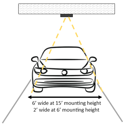 • Narrow beam (3–6 ft) for targeted motion detection